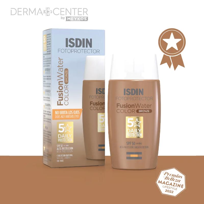 Fusion Water Color Bronze es un protector solar facial con color. Gracias a su fórmula ultraligera, protege tu piel a diario contra los rayos UVB y UVA (SPF 50). Aporta una cobertura natural que disimula imperfecciones, unifica el tono y proporciona un efecto buena cara. ¿Lo mejor? No irrita los ojos.