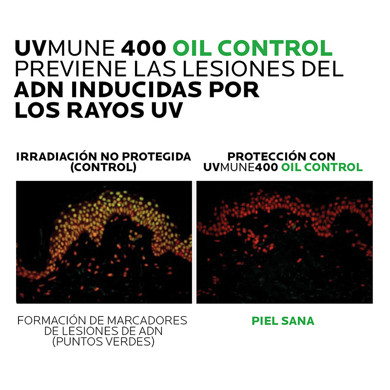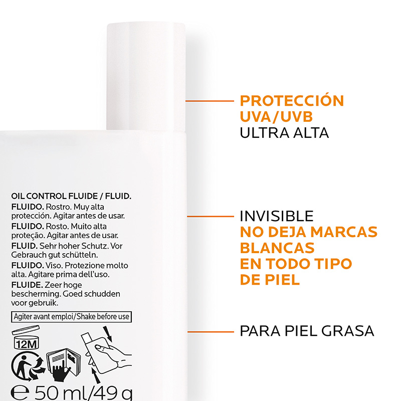 Hace parte de la nueva generación de protectores solares con filtro Mexoryl 400, que protege de los rayos UV con mayor incidencia (hasta 400nm) y contiene la tecnología Oil Control que absorbe de inmediato el exceso de sebo y deja un acabado mate. Especial para piel mixta a grasa. Textura fluida