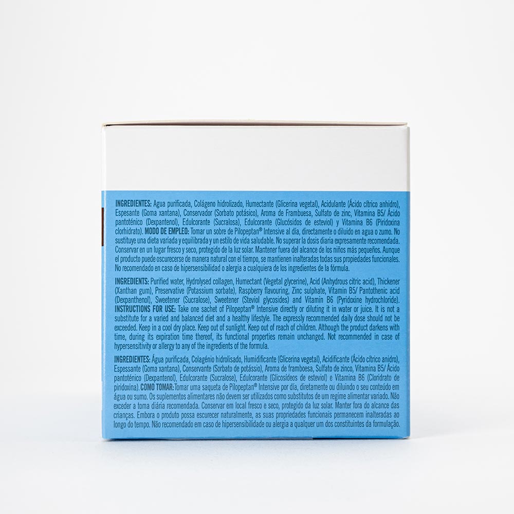 Complemento alimenticio en formato sobres bebibles para la caída aguda del cabello y regeneración de las uñas formulado con Colágeno hidrolizado, Vitaminas B5, B6 y Zinc.