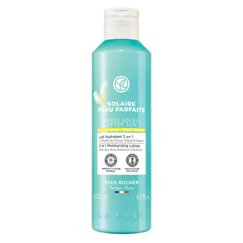Esta leche hidratante 3 en 1, enriquecida con Cardo de Mar, calma inmediatamente la piel expuesta al sol, la hidrata en profundidad y la repara del daño solar. La piel recupera su flexibilidad y el bronceado se ve embellecido.
